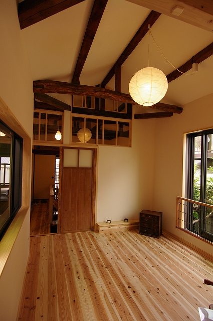 主人の転勤と共に上京・子育てをした街に執着がなく、ずっと借家住まい六十歳目前でこれから先どこで暮らすのか途方に暮れてました。 3年前に母の実家が空きましたが、その家は左官の祖父が自分で手を加えたボロ家で隣と接近し狭小地。古民家と呼べるような代物ではなく、1件の工務店に『うちでは無理』と言われ先行きが見えない時にご縁があり、片岡社長に来て頂きました。最後に『面白い家になりますよ』とニコリとされたのに心から嬉しくホッとしたのを覚えています。あれから1年半限られた予算や兵庫在住のままでしたので、MIスタッフ・工事関係者の方々にお任せする事ばかりでしたが、全権の信頼をおいていたので何の不安もありませんでした。ご縁で繋がった方々が、この家に集ってくださるのを楽しみにしています。高知移住夫婦の終の住処。これから先、建てて頂いたこの家を大事に慈しみたいと思っています。