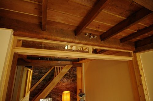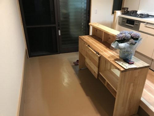 玄関土間は残しつつ、奥はリビングになっております。導線を考え、階段は架け直し生活しやすいように・・・